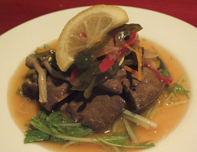 「ポークレバーの南蛮漬」レバーはホクッと心地よい食感! 南蛮漬けのたれのキャッチーな甘みが心地良い。。。