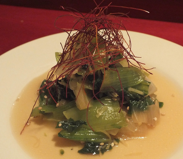 「青梗菜のおひたし」サクサクっと心地よい食感! 精進料理に憧れる店主の“きまぐれタパス” ! 昆布と椎茸の出汁を利かせ、生姜でサッパリ♪