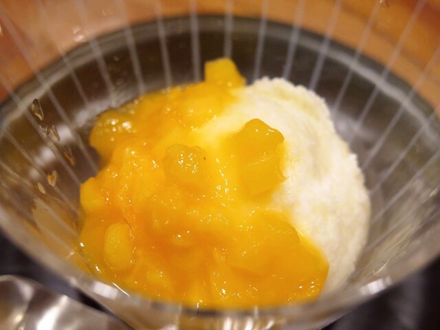 ◆「ヨーグルトのシャーベットにマンゴーのソース」