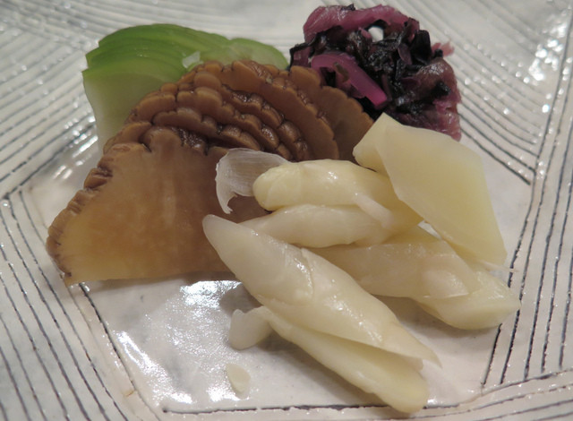 私が伺った時は、新生姜、いぶりがっこ、浅漬ザーサイ。