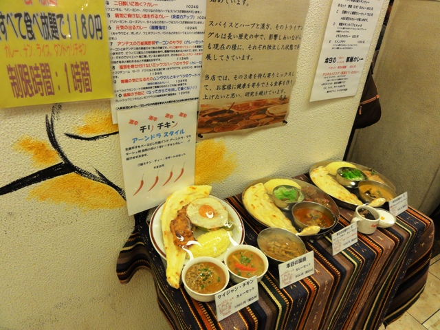 チキンカレーは手羽元を骨付きで煮込んだものでコクがある。