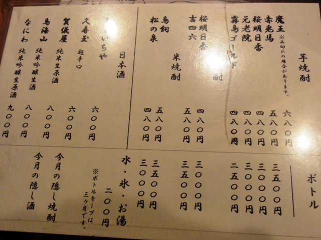 こちらのドリンクリストには焼酎や日本酒もあります。