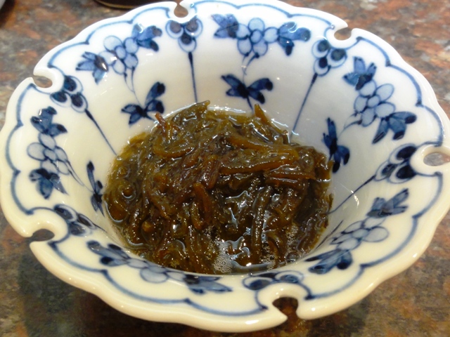 お通しでしょうか。もずく酢と枝豆。枝豆パリッとしています。