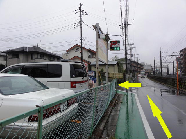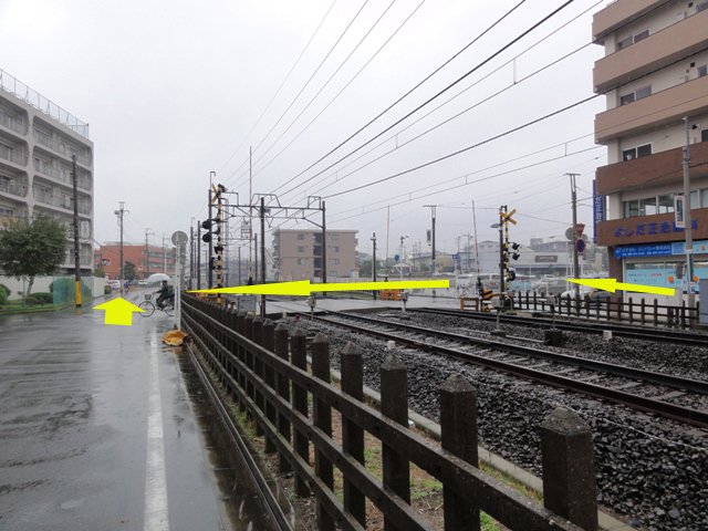常盤平南口を出たら五香方面線路沿いに歩き、踏切を渡り線路の反対側に。