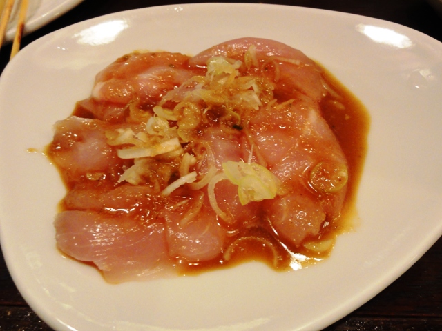 とり刺380円はしっとりとした食感。