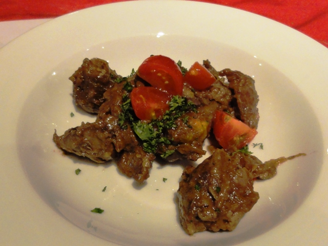 若鶏肝サルミ380円:キャンティーにドンピシャなおつまみ。