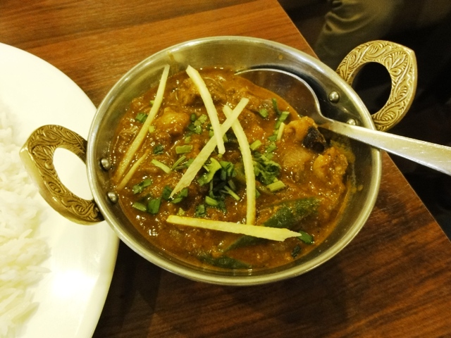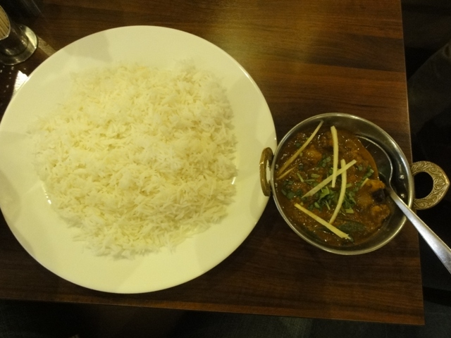 ランチと比べるとマトンカレーとチャパティ(全粒粉の薄焼きパン)が増えた感じ。