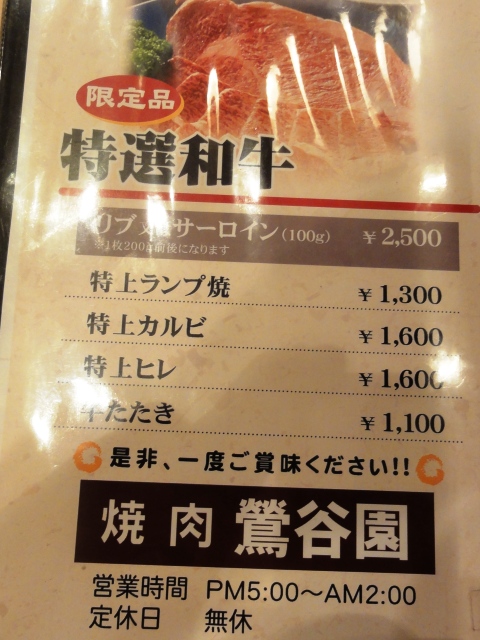 特上ランプ焼き1,300円