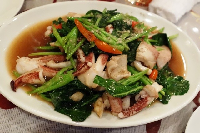 海鮮スイートチリソース炒めという感じ。