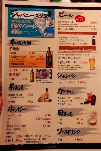 ビール代替品のホッピーはビールより高額ではいけないという好例。中200円を追加していけば割安に酔っ払うことが出来る。まあすでに酔っているのだけど。