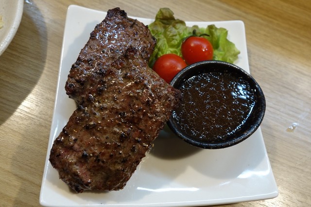 表面は焼き固められているが中身はユッケのようなレア。ミンチにした赤身の肉からは旨みがダイレクトに伝わる綾瀬店の看板メニュー。