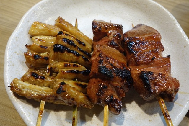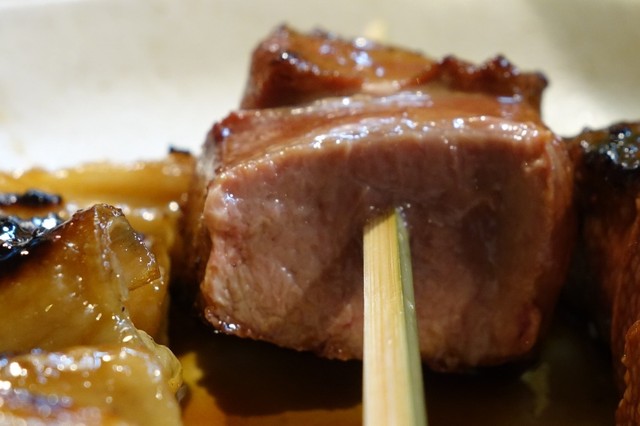レバーはレアな火入れでしっとり・もつ焼きを食べていると何故だかダンゴを摘まみたくなる。