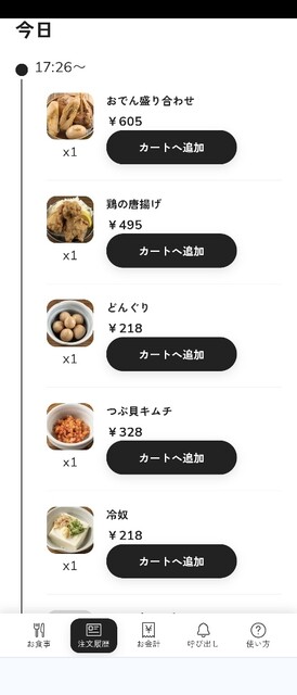 どんぐりに次いでの高CPはおでん。1個100円はコンビニと同じくらいだが、汁の染み具合はこちらに軍配が上がる。