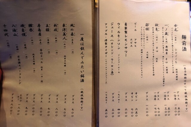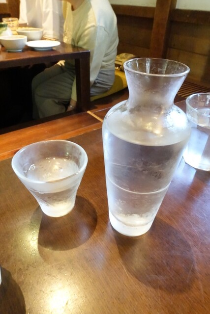 先ずは麺前酒と洒落込もう。ガラスの大きめの徳利と猪口が涼しげ。1.5合というのがまた良い。なかなか無くならない酒は頼りになる。