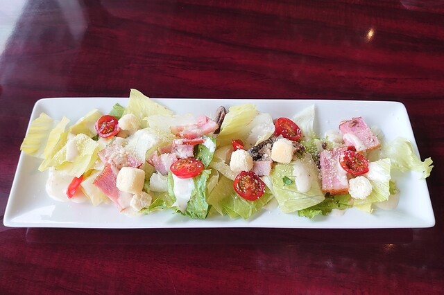 シーザーサラダのベーコンとは比較にならないサイズで登場。そしてギブアップ宣言。次なるピザはテイクアウトにして貰った。