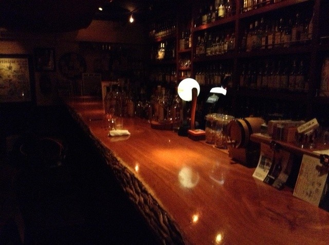 9人がけのカウンターと2人から6人で使える小部屋があります。お酒はシングルモルトとラムがかなりの品揃えであります。カクテルも一通りあります。