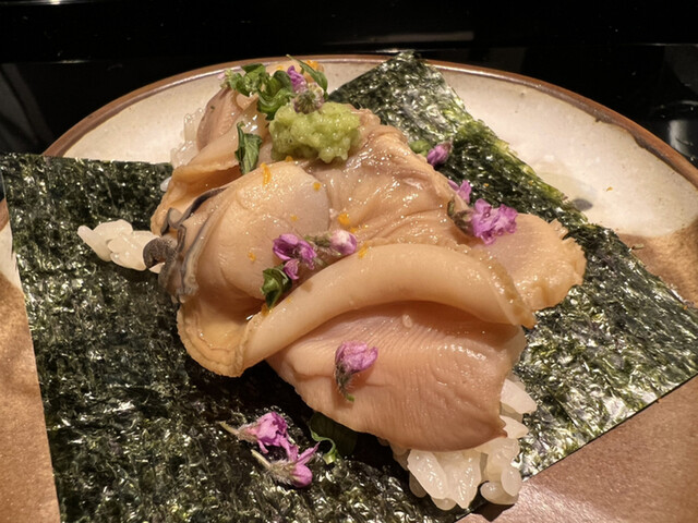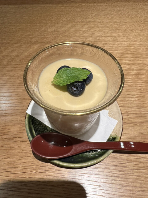 その後金目の炙り、煮蛤のお寿司、筍、白和え、揚げ茄子、よこわのお造り、白海老唐揚げと出て、締めは土鍋で炊いたしらすご飯、デザートに紅茶のプリンと続きました。