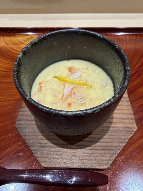 その後着席してスタート。一品がいくつか出て握り、天麩羅、茶碗蒸し、巻物、デザートと続きました。お造りやお寿司はとても美味しかったのですが、茶碗蒸しが熱々では無いのが気になりました。
