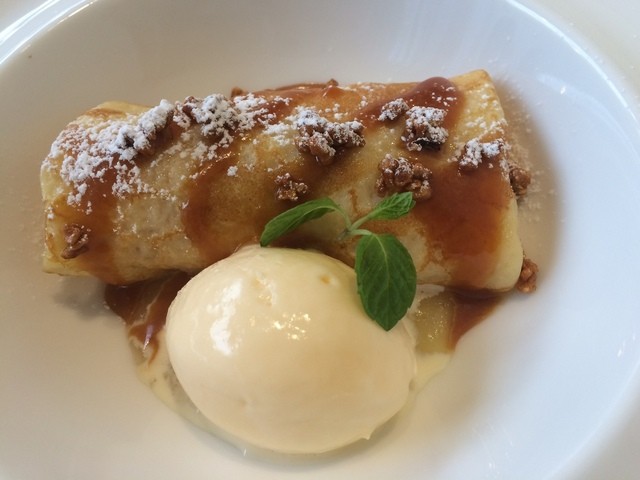 デセール(りんごのクレープ包みとバニラヨーグルトアイス)