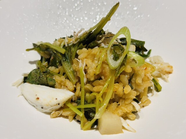 妻のBDでお邪魔しました。以前よく通ったレオーニの小野シェフが西川沿いに昨年オープンさせた薪焼きフレンチのお店です。ディナーは14000円一本、ペアリングは7杯60mlが8800円、30mlが6600円で税金サービス料込みのわかりやすい値段になっています。お料理はトリュフオイルの香るコンソメスープから始まり、最後の炊き込みご飯(この日はワタリガニと壬生菜)まで全8品、そこからデザートが3品+プチフールという構成です。