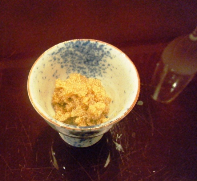 ハモの卵。・・・ん?心霊写真のようにグラスが写ってる?