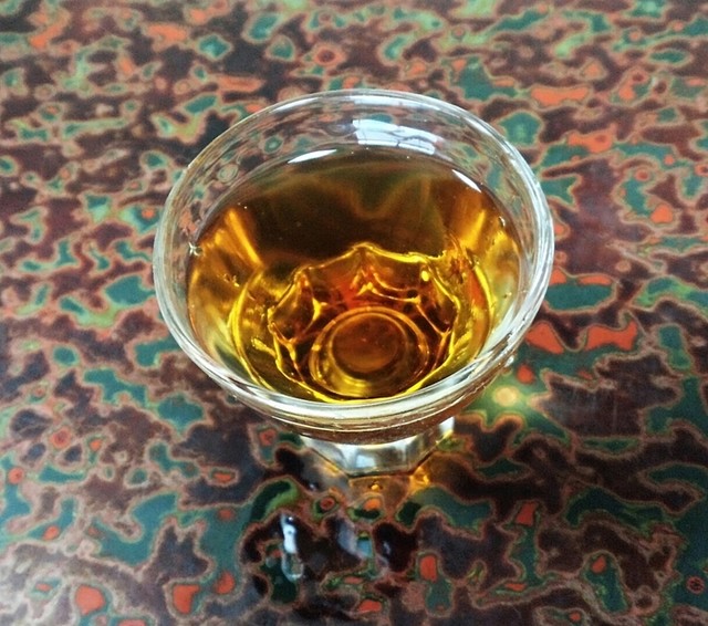 グラスに注いでみると、まるで紹興酒のように美しい琥珀色。