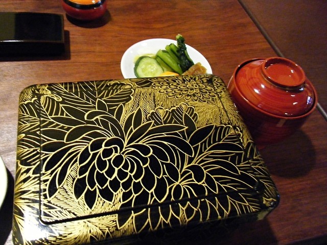 お重のフタには「小川菊」の「菊」?。