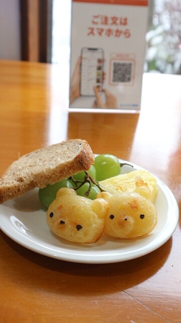 そしてパン皿に、ポンデくまさん、パン、パンケーキなど!メープルシロップはちょっとオシャレなスポイトで吸って掛ける、、、(店員さんに使い方聞いてください)