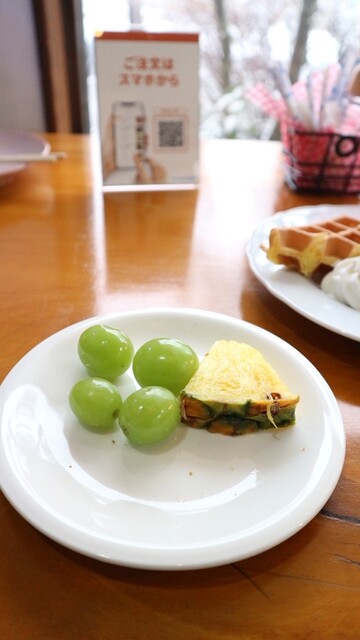 モーニングサービスで、ドリンクに無料でバタートーストなどが付きましたか、ワッフルを無料で選びましたが大きい!うれしい悲鳴です。