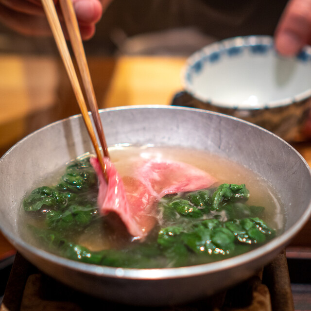 但馬牛のサーロインのしゃぶしゃぶ 椎茸と冬瓜