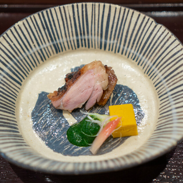 京都府亀岡産七谷鴨 胸肉と鴨ハツ 千寿葱 和歌山檸檬 山葵 粒辛子