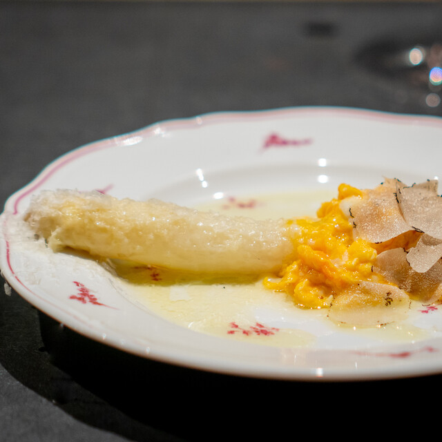 ●ホワイトアスパラガス、スクランブルエック、黒トリュフ