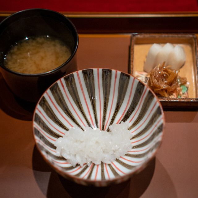 ●白米 浅漬け きんぴら 沢庵 赤出汁