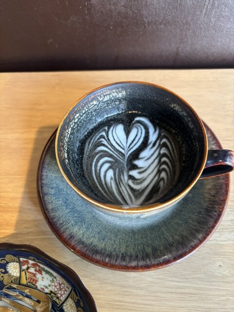適温でほっこり、ケーキは程よい甘味と濃厚さが良い。ラテと交互にいただき後味スッキリ。ラテアートは飲み進めても崩れない奇跡の一杯