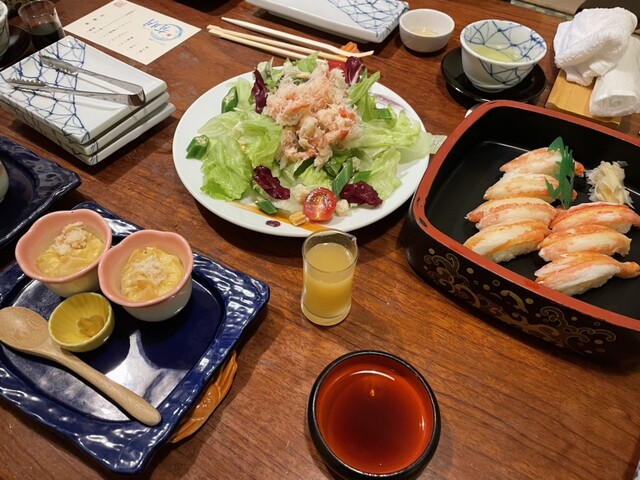 こちらのカニ寿司とカニ釜飯が大好きなんです♪
