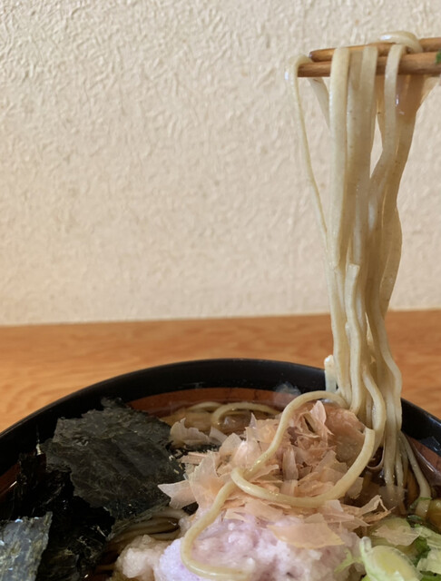 水切り具合良し、これぞコシと言える穏やかな弾力良し、噛みしめて広がる甘味良し。そして汁はムチムチの返し(醤油)で甘さ控えめの北海道的辛口仕様、この汁の完成度にも要注目。