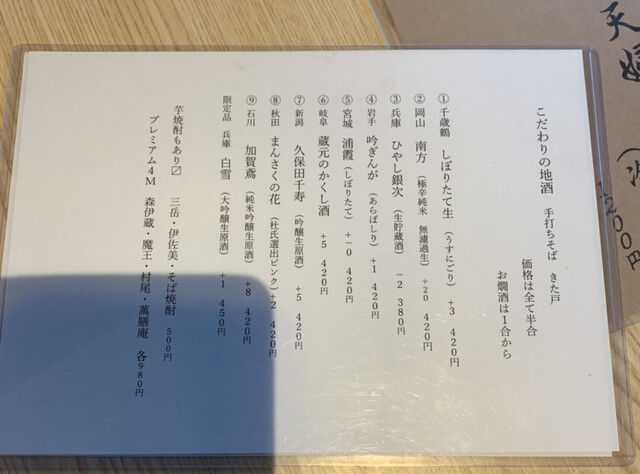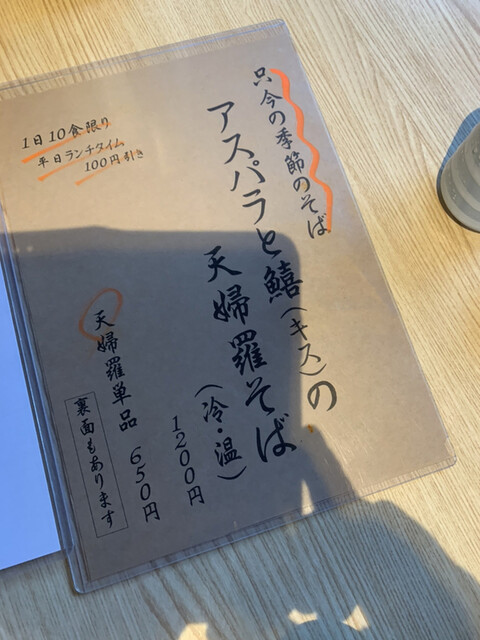 メニューは要所を抑えた超精鋭系に、季節ものを一品置く。他には丼物や一品物も少数精鋭型で置くが、夜は居酒屋的メニューも登場するらしく、そちらは店奥のホワイトボードに表記があった。