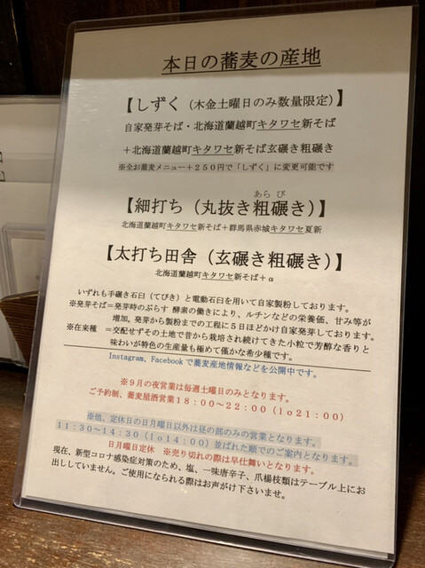 訪問は遅めの時間だったので、ご主人や女将さんと少し蕎麦トーク、これも楽しくて有意義なひとときです。あらソバオ君が前日に来て同じ席に?(笑)そして蕎麦のある手法も少し変える…ほうほう。