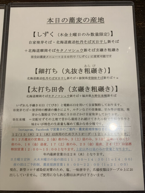 しずく 自家発芽そば⇒鹿追町牡丹蕎麦天日干し新そば+摩周産キタノマシュウ新そば玄挽き