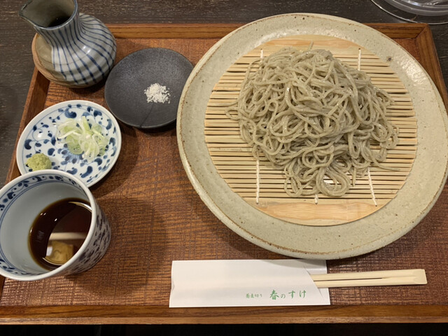 春のすけらしいしなやかな麺線と心地良いソフトな弾力のコシ、蕎麦の味わいを最大限感じられる温度で水〆され、口の中に入り組織するまでのストーリーまでも計算された粗挽きの蕎麦。
