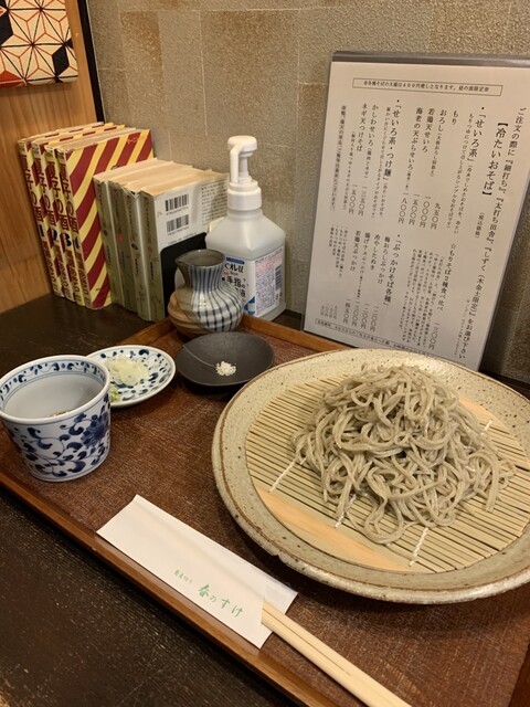 さちいずみを使用したスタンダードな蕎麦、弾力あるコシにシコシコとした歯切れに甘味が後からジワリ。汁(つゆ)は今回、春のすけのものを使用。