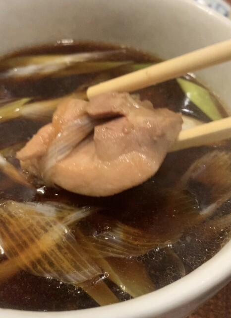かしわせいろ汁はムチムチの旨味がはちきれるような味わいで甘さの余韻もある万人受けタイプ。かしわ肉はとても柔らかくて上品な味わい。程よく溶けだした鶏油もコクに良い作用、そして葱だって美味いんだ。