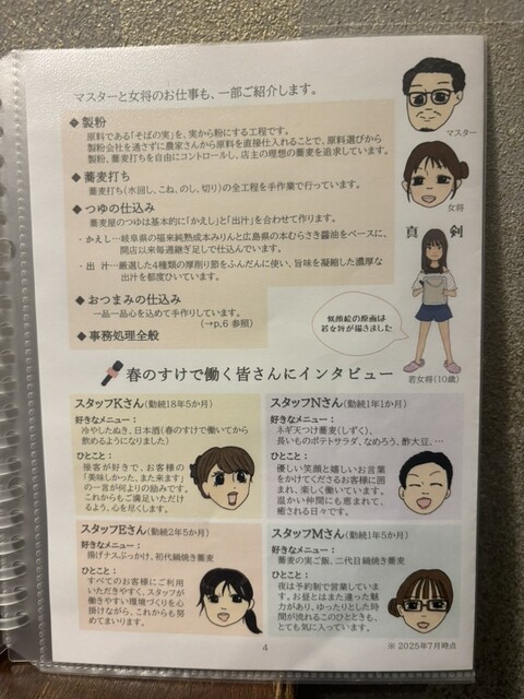 常に勉強熱心であり、蕎麦の知識は勿論の事、哲学もあり。元ライターの経験から、美しい表現と分かりやすい文章でSNSによる情報発信も怠らず、時に蕎麦を語り出せば流暢かつ目の輝きが凄い。蕎麦を語るその眼力は流れ星同様、いやそれ以上。
