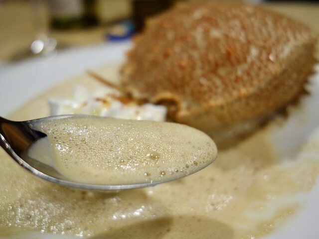 これを味わうために訪れて良い、ロランジュを代表する一品は「ドレスを着飾った毛蟹」…その味わいは毛蟹を超えるかも。濃厚の上に濃厚、毛蟹の旨味の多重装奏。しかしながら包み込むメレンゲとクリームのハーモニーで、それはある意味で攻めつつも「心地良いしつこさ」だ。確かヨモギだっただろうか…サクッとモッチリなボディ感あるパンにソースを浸けて最後まで惜しみなく。