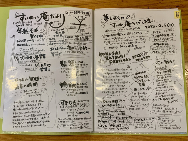 メニューやチラシ。これらは見て楽しく、読んで楽しい。蕎麦に・・そしてこの店にとても好印象を与えていると思う。