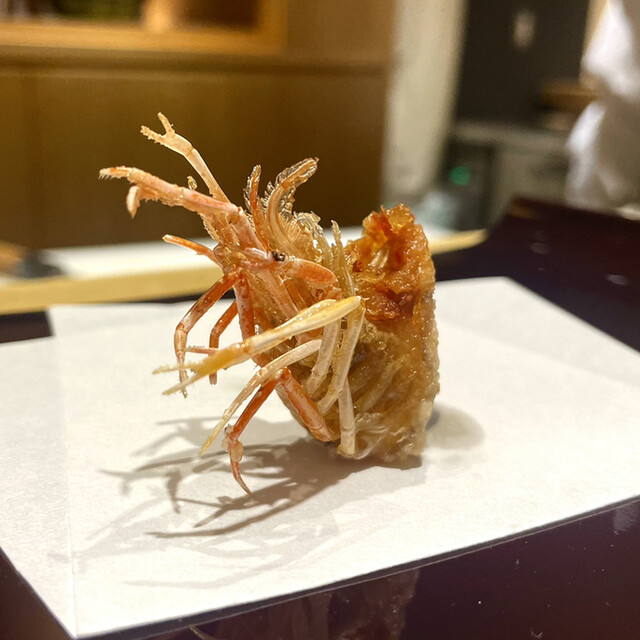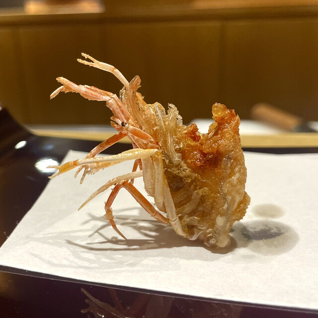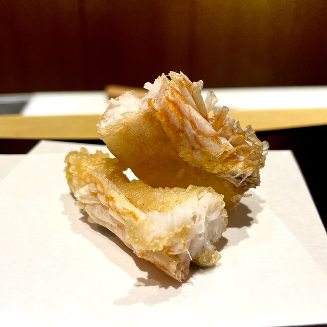 天ぷら、先ずは、車海老くも足、カリッと揚げ絶妙