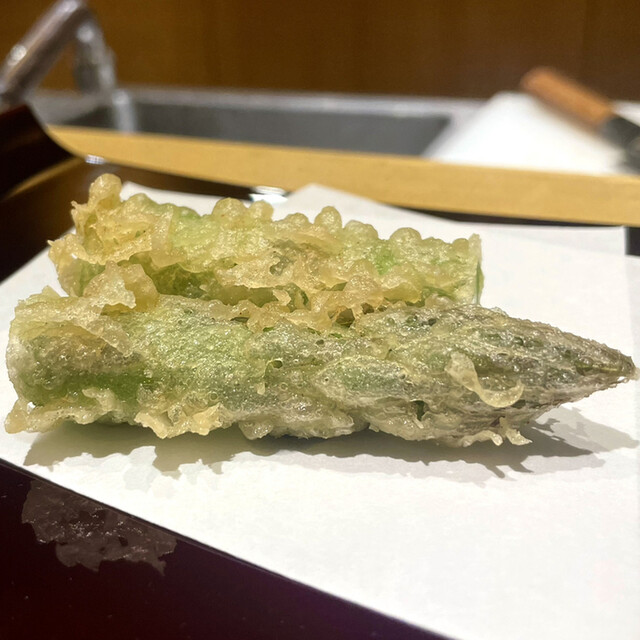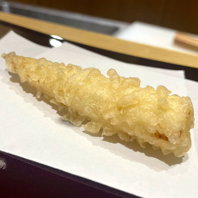 ヤングコーンの天ぷら、サクッと食感甘味抜群美味