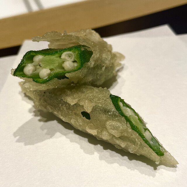 おくら天ぷら、衣はカリッと身は粘り良し抜群美味