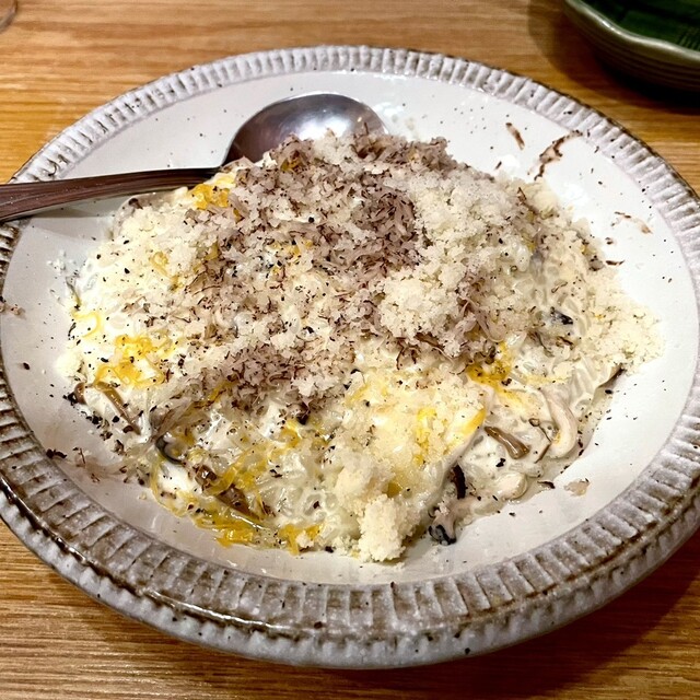 〆はトリュフのリゾット、黒トリュフの粉たっぷり