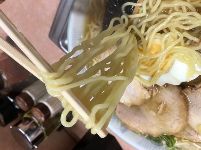 麺は縮細麺。量が結構あるのでがバッと箸で挟み